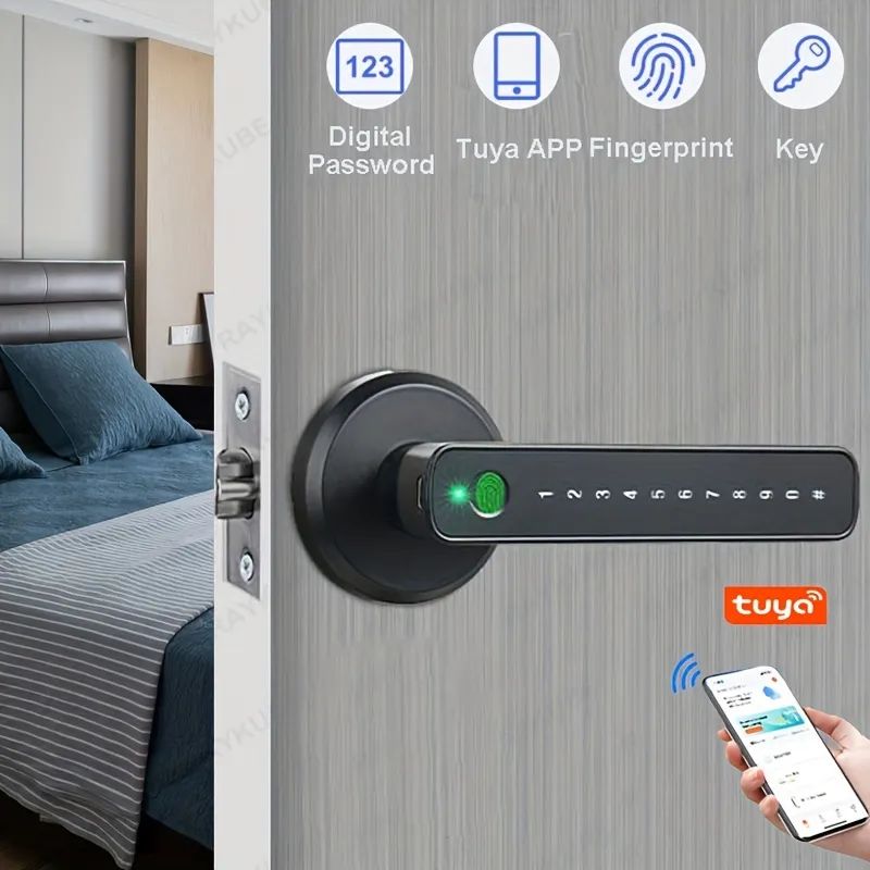 ✔️Unlock way : Fingerprint + Password + App + Key + Card